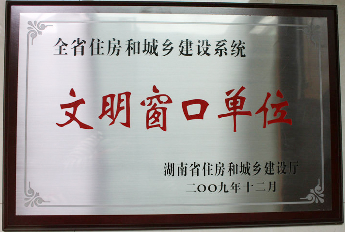 • 2009年12月被湖南省住房和城鄉建設廳評為“全省住房和城鄉建設系統文明窗口單位”